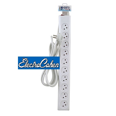 רב שקע 10 + כבל 3 מטר + מפסק מאושר מכון התקנים Semicom