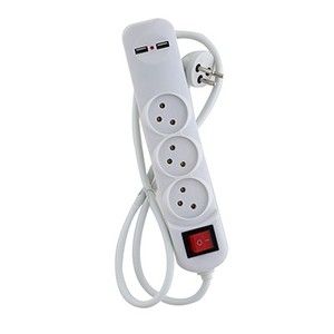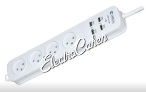 רב שקע 4 מקומות עם כבל 1 מטר, מפסק וחיבור USB Semicom