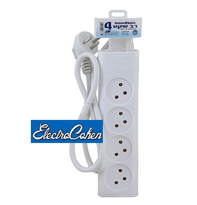 מפצל שקעים ל-4 עם כבל לתקע חשמל באורך של שלושה מטרים
