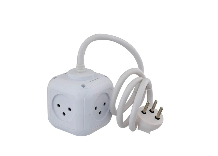 רב שקע קובייה 5 שקעים וכבל באורך 1 מטר