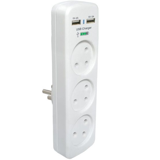 רב שקע 3 שקעים כולל 2 כניסות Omega USB