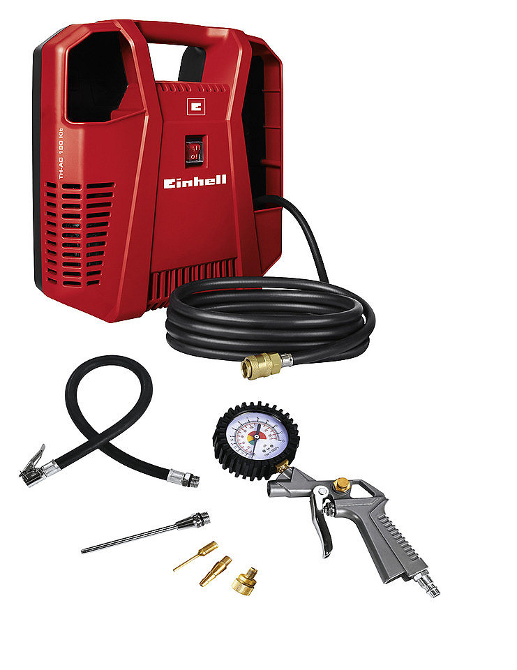 מדחס אוויר חשמלי ללא שמן קומפקטי. כולל צינור אוויר, אקדח אוויר ומתאמים. מבית Einhell גרמניה!