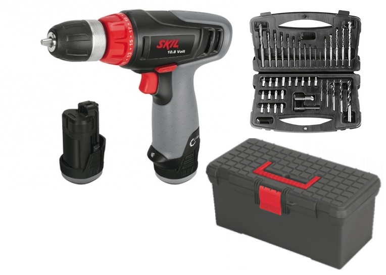 מברגה/מקדחה 10.8V עם 2 סוללות וסט מקדחים Skil