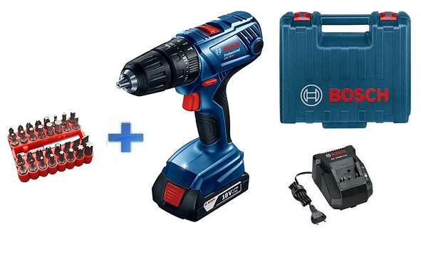 כולל סט ביטים מקצועי ומפואר 32 חלקים – מתנה! מאפשרת קידוח בבטון, בלוקים, עץ ומתכת! וכן פנס לד עוצמתי מובנה. מגיעה במזוודה קשיחה ואיכותית של BOSCH.