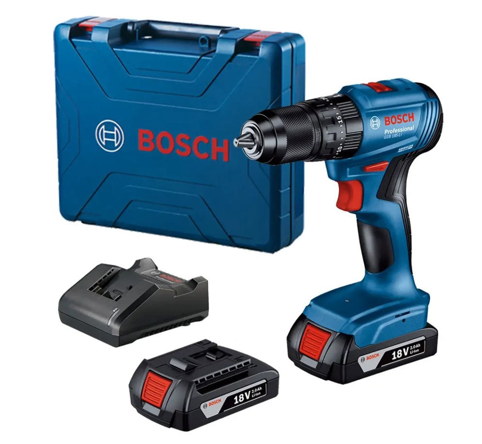 מברגה/מקדחה 18V מנוע ללא פחמים 2 סוללות 2.0AH ומטען GSR 185 LI Bosch