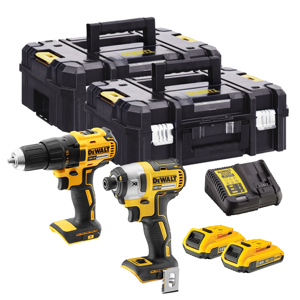 סט 18V BL מברגה/מקדחה+אימפקט סוללות 2AH דגם DCK2070D2T בתיק! DEWALT