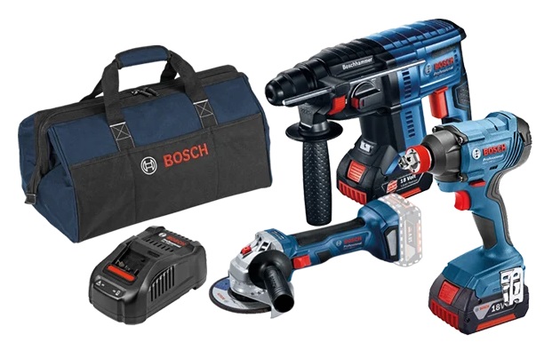 סט 18V פטישון+משחזת ללא פחמים +אימפקט עוצמתי 2 סוללות 5AH Bosch