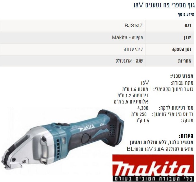 גוף מספרי פח נטענים 18V דגם BJS161Z מבית MAKITA