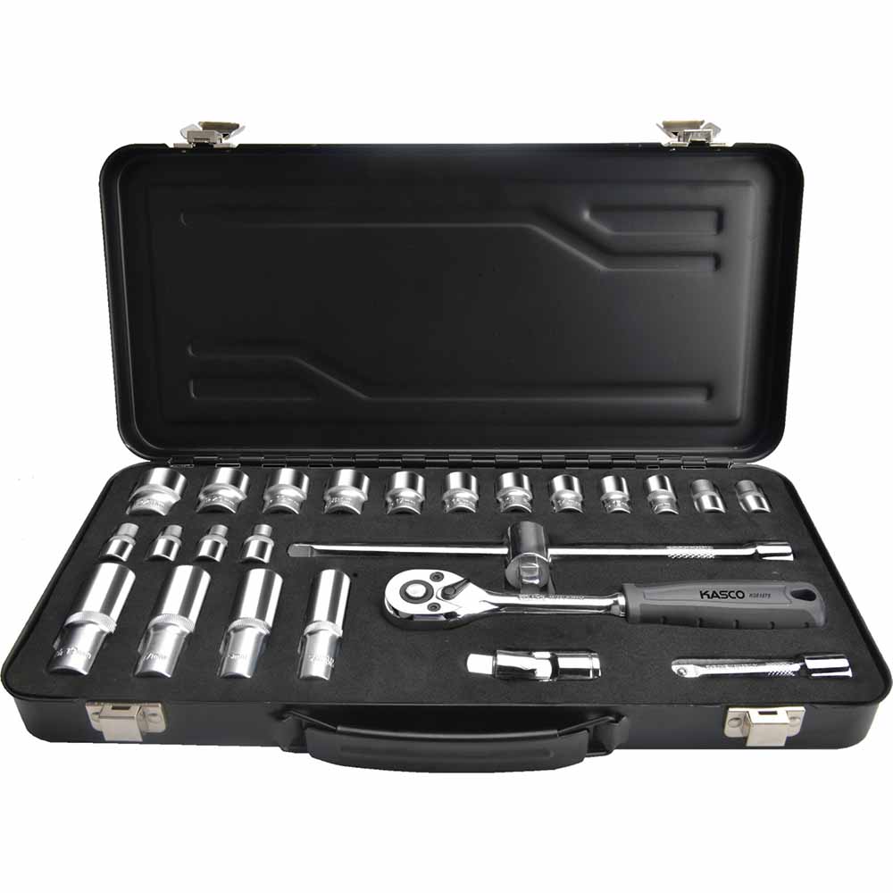 סט בוקסות מקצועי הינע “3/8 מ“מ 25 חלקים במזוודת מתכת KASCO