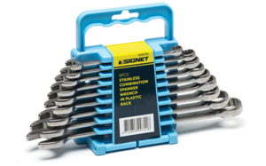 סט בוקסות כח שחור 10 יח ממ SIGNET D1/2 + פנס ראש טלסקופי 420 LUMEN מבית SIGNET + סט חולצי ברגים ספירלי 5 יח SIGNET + סט רינג פתוח 8-19 ממ 9 יח במתלה SIGNET + מגני ברכיים ספוג מבית SIGNET + קליבר 150 ממ SIGNET 075420 =