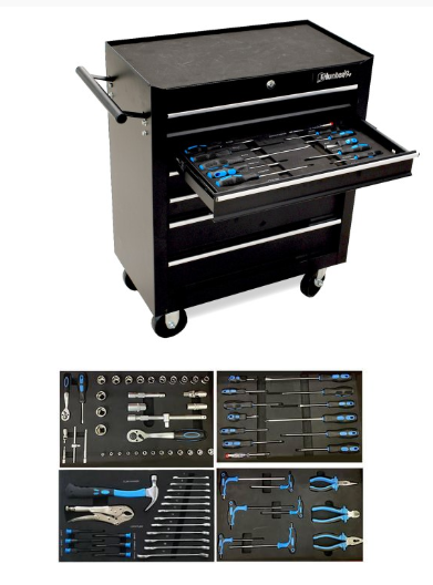 עגלת הכלים הדגם 170119-003 של HUNTER היא פתרון אחסון מקצועי, חזק ונייד לכלי עבודה. העגלה מגיעה עם 6 מגירות מאובזרות היטב, הכוללות סטים מגוונים של בוקסות, מברגים, ידיות T, פליירים, מפתחות רינג, טסטר, פטיש ועוד – סך הכול 79 כלים חיוניים, מאורגנים בצורה נוחה ונגישה. המבנה החזק מאפשר נשיאה של עד 47 ק"ג, עם מגירות בעומקים שונים לניצול מקסימלי של המקום. הגלגלים התחתונים מספקים ניידות קלה, והמשטח העליון מעניק מקום עבודה נוסף. כולל בין היתר: סט בוקסות “1/4 מ־4 ועד 14 מ”מ סט בוקסות “1/2 מ־10 ועד 32 מ”מ מגוון מברגים שטוחים ופיליפס באורכים שונים ידיות T אלן כדורי במידות מגוונות פליירים מקצועיים: פטנט, אף ארוך, קטר מפתחות רינג מ־8 ועד 19 מ"מ טסטר, פטיש טפסן, מברגי שען ועוד