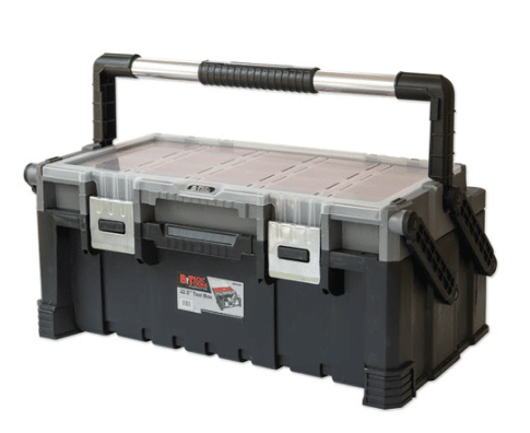 האורגינייזר העליון נשלף בקלות, והארגז כולו מתאים לנשיאה קלה בשטח או לאחסון מוסדר ברכב העבודה.