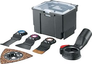 משור/מלטשת רב שימושי + 14 אביזרים PMF190E + סט 5 חלקים STARLOCK - סט משולב למגוון עבודות + סט 4 להבים STARLOCK - סט משולב לרצפים + סט 4 להבים STARLOCK - סט משולב לאריחים + סט 5 להבים STARLOCK לחיתוך מתכת + עץ =