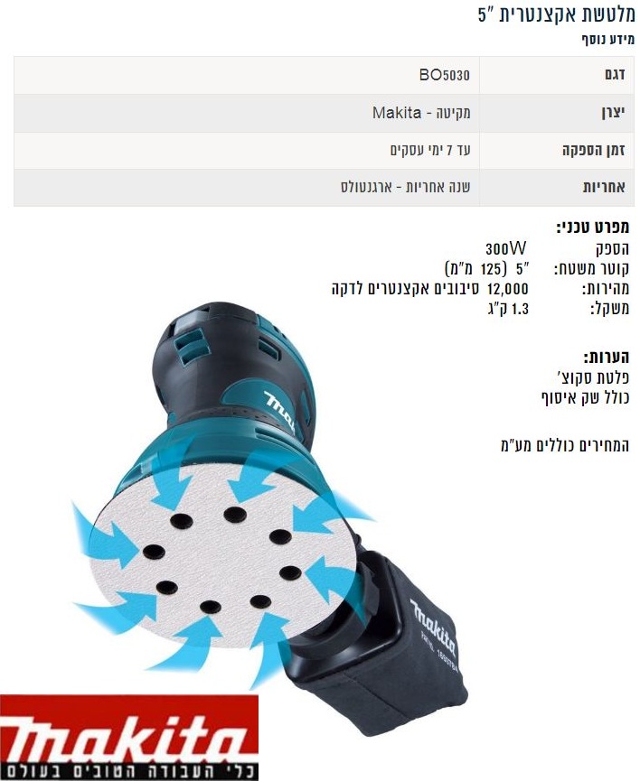 מלטשת "5 דגם B05030 מבית Makita מחיר 533 ₪ מסיכת חצי פנים + 2 פילטרים מבית SIGNET מחיר 122 ₪ במקום 145 ₪ רוטר 930W דגם 3601B מבית MAKITA מחיר 1,118 ₪ כפפות עבודה עם בלימת זעזועים XL מבית SIGNET מחיר 77 ₪ במקום 89 ₪ גוף פנס LED נטען 4500 לומן מתאים לכל הסוללות SIGNET מחיר 469 ₪ פטישון 28 מ"מ HR2810TZ מתוצרת Makita מחיר 1,398 ₪