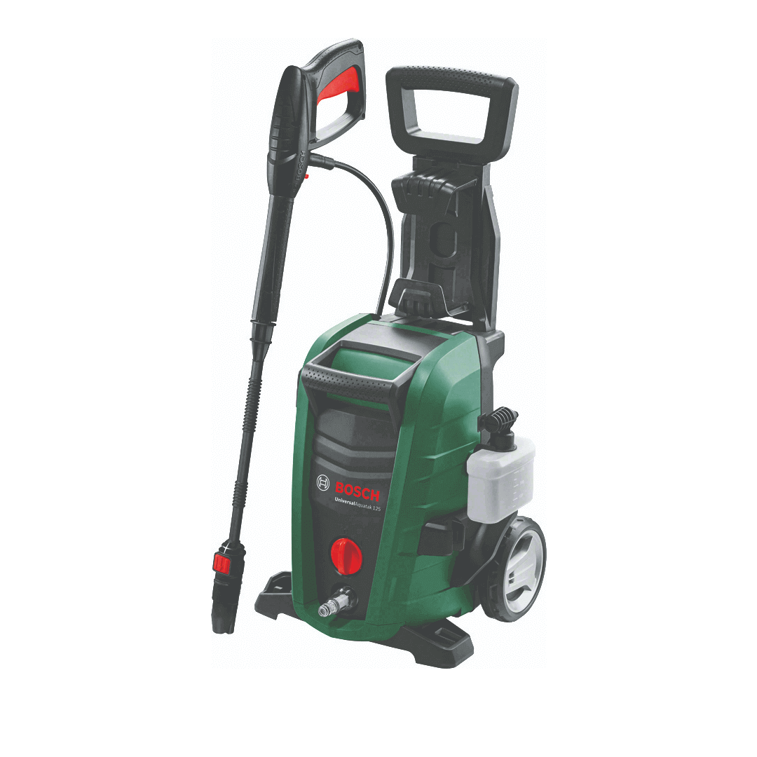 מכונת שטיפה דגם 135 Universal Aquatak מבית BOSCH מכונת שטיפה 135 Universal Aquatak אינה מיועדת לעבודות תעשייתיות. חיבור למקור מים חיצוני כולל מיכל סבון, גלגלת, ידית מתכווננת, אקדח, מאריך ומאריך טורבו