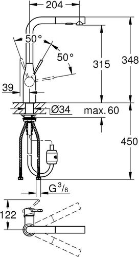ברז פרח למטבח פיה נשלפת שני מצבים אסנס ESSENCE כרום מתכתי GROHE - גרואה 30270DC0 GROHE גרואה