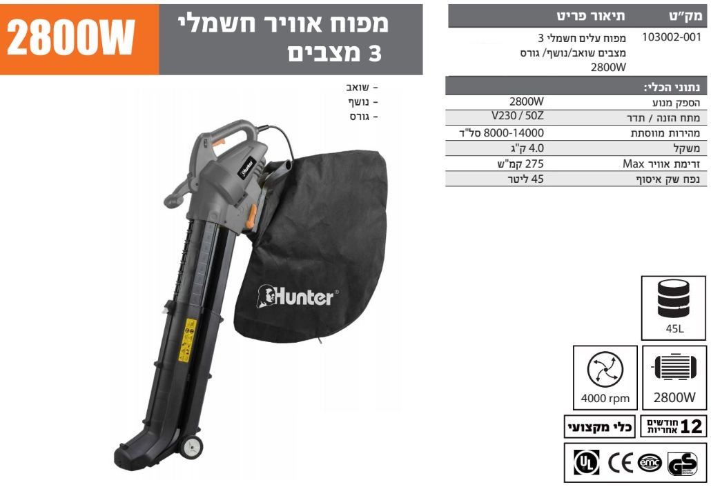מפוח אוויר 3000W שואב נושף וגורס HUNTER