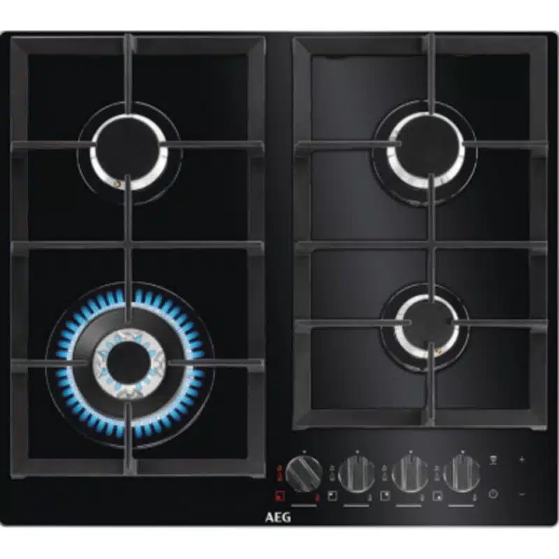 כיריים גז זכוכית 60 ס"מ עם 4 להבות בגימור צבע שחור עם Step Power לבוררי השליטה!