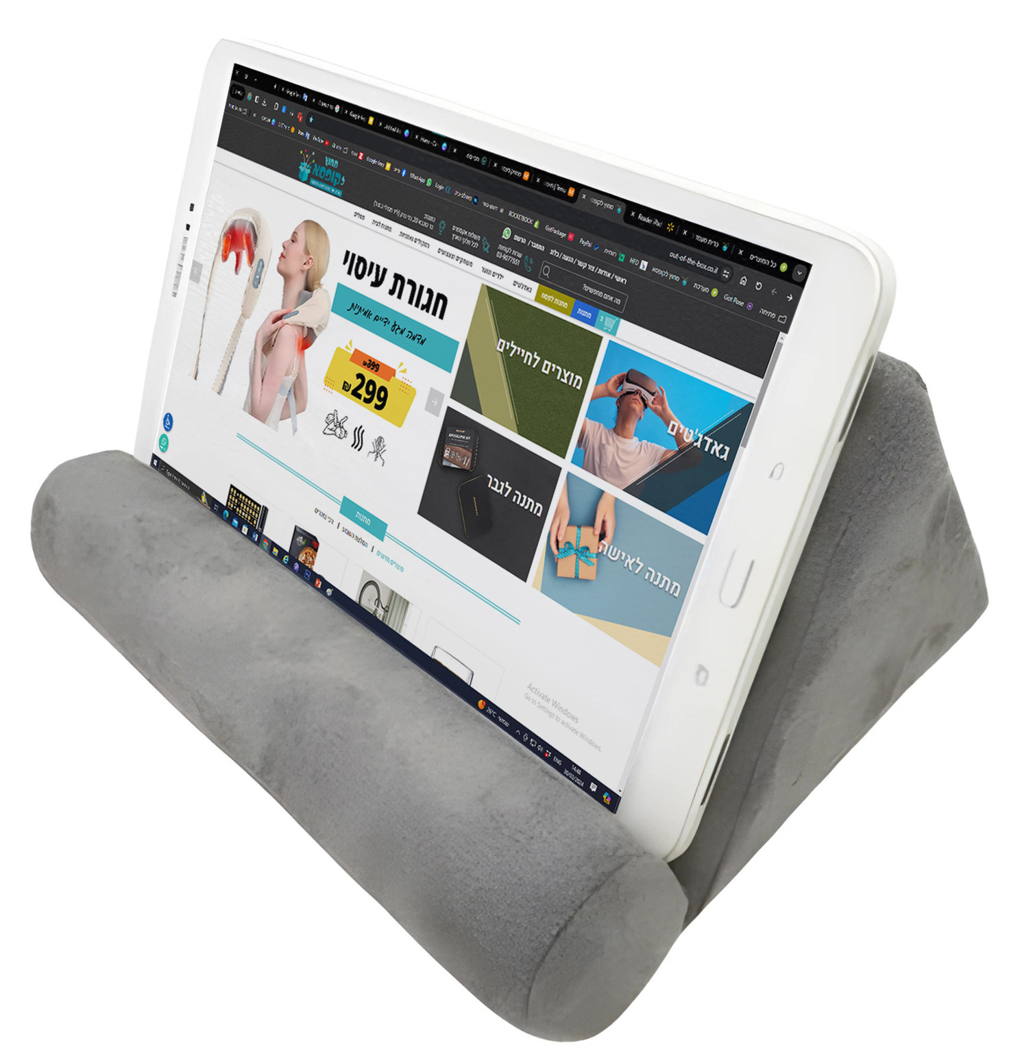 כרית מעמד לטאבלט, למיטה | ספה| כסא | שולחן מעמד כרית. אוהבים לקרוא ספרים במיטה לפני השינה? אוהבים להשתמש בטאבלט במטוס? אוהבים לצפות בסרט בטאבלט במיטה לפני השינה? כואבות לכם הידיים להחזיק את הספר/טאבלט? לכרית משקל נמוך מאוד כ שאינו מציק ואינו מכביד לכם על הרגליים. עשוי מבד קטיפה נעים למגע. לכרית יש קצוות המונעות ממנו להחליק על הרגל שלכם. פתרון ארגונומי לשימוש במיטה, על הספה, בטיסה, בנסיעה ברכבת/רכב, על השולחן המשרדי. קיים בצבע אפור בלבד. מידות: רוחב-24.5 ס”מ, גובה-13 ס”מ, עומק-19 ס”מ. גאדג’טים, גאדג’טים למשרד, גאדג’טים לנסיעות, גאדג’טים לסמארטפון וטאבלט, גאדג’טים לרכב, כריות, לייף סטייל, לנסיעות, לשולחן המשרדי, מוצרי פרסום, מוצרי קד"מ, מוצרים ארגונומיים, מתנה לאח, מתנה לאחות, מתנה לבעל, מתנה לגננת, מתנה לטיסה, מתנה ליום נישואין, מתנה למורה, מתנה למסיבת רווקות, מתנה למסיבת רווקים, מתנה לעובד מצטיין, מתנה לתלמיד, מתנה מקורית למפקד, מתנות אישיות, מתנות לאבא, מתנות לאישה, מתנות לאמא, מתנות לבית, מתנות לבן זוג, מתנות לבר מצווה, מתנות לבת מצווה, מתנות לגבר, מתנות לגיל 20, מתנות לגיל 30, מתנות לגיל 40, מתנות לגיל 50, מתנות לגיל השלישי, מתנות לוועדים, מתנות לחבר, מתנות לחברה, מתנות לחג לעובדים, מתנות לחגים, מתנות לחיילים, מתנות לחנוכה, מתנות לחנוכת בית, מתנות ליולדת, מתנות ליום האהבה, מתנות ליום האישה, מתנות ליום הולדת, מתנות ליום המשפחה, מתנות לילדים, מתנות לכנסים, מתנות לכריסמס, מתנות ללקוחות, מתנות ללקוחות עם לוגו, מתנות למנהל, מתנות למשרד, מתנות לנובי גוד, מתנות לסבא, מתנות לסבא וסבתא, מתנות לסבתא, מתנות לסטודנטים, מתנות לסילבסטר, מתנות לעובד שעוזב, מתנות לעובדים, מתנות לעובדים ליום הולדת, מתנות לעובדים לראש השנה, מתנות לעורך דין, מתנות לפסח ללקוחות, מתנות לפסח לעובדים, מתנות לראש השנה ללקוחות, מתנות ממותגות, מתנות עד 100 שקל, מתנות עד 200 שקל, מתנות פרידה, מתנות פרישה, מתנות קטנות ללקוחות, מתנות רומנטיות, מתנת שחרור