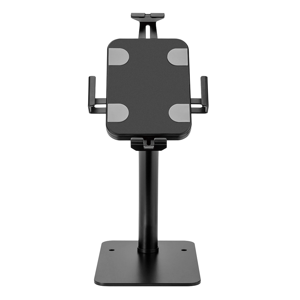 מעמד טאבלט שולחני LUMI PAD33-03 הוא קיוסק שולחני אנטי־גניבה (anti-theft) שנועד להציב טאבלט בצורה בטוחה, יציבה ומקצועית במקומות כמו חנויות, דוכנים, קופות, מוקדי שירות ועוד. המעמד תומך בטאבלטים בגודל 7.9″ עד 11″, כוללת מנגנון נעילה (lockable screw) שמונע פירוק או גניבה, עצירה בטיחותית, ניהול כבלים פנימי (cable management), וכיוון זוויות (tilt) וסיבוב (rotation) להצגה הן במצב אנכי והן במצב אופקי. עיצוב שחור אלגנטי שמשתלב היטב בסביבה קמעונאית/עסקית, עם שילוב של פלדה ופלסטיק איכותי למראה מקצועי ועמיד. מתקן שולחני מקצועי לטאבלט | מתקן תצוגה לטאבלט