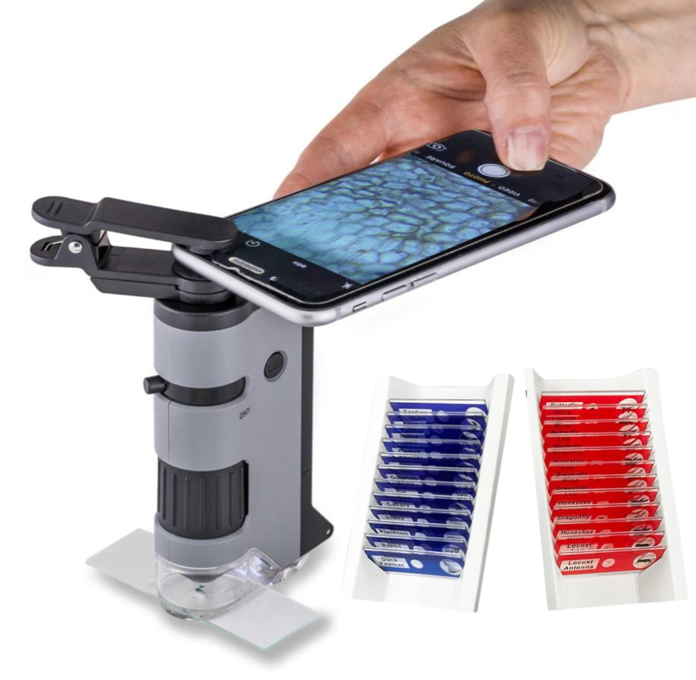 MP-250 MicroFlip מבית CARSON הוא מיקרוסקופ כיס עוצמתי עם כושר הגדלה / זום של בין פי 100 עד פי 250 המצוייד בנורת – LED עם אור לבן ואור אולטרה סגול (UV), בסיס זכוכית נושא מסוג Flip Down וקליפס להצמדה לסמארטפון מדגם – Digiscoping MP-250.