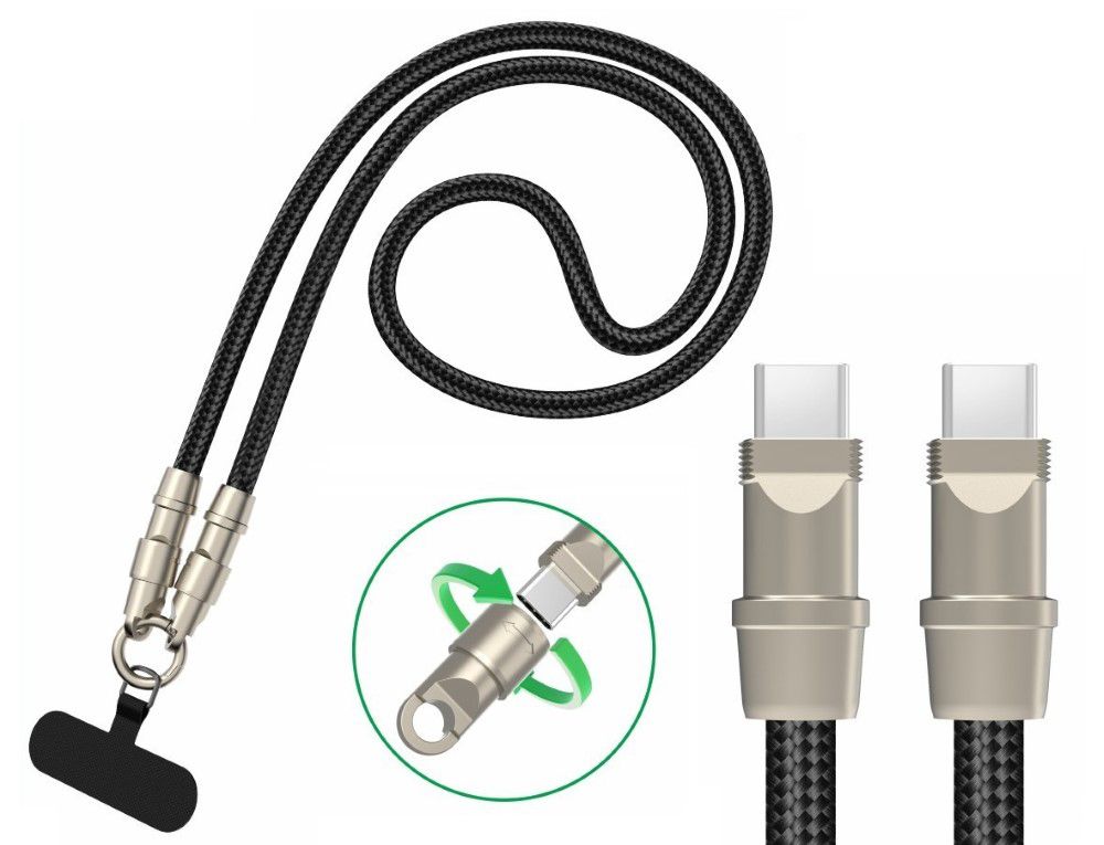 שרוך נשיאה לסמארטפון משולב כבל טעינה מהיר – עם חיבור טייפ-סי לטייפ-סי