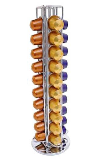 מתאימה לאחסון של עד 40 קפסולות – מתאים לכל סוגי הקפסולות למכונות הקפה מסוג נספרסו או תואם נספרסו! עיצוב נקי ופשוט מאפשר שליפה של הקפסולה הרצויה בקלות רבה – הקרוסלה מתאימה לאכסון של 50 קפסולות, הקרוסלה בעלת בסיס מסתובב המשלב מסילות נירוסטה עליהן ניתן לאכסן את הקפסולות השונות לפי רצונכם, במרכז המתקן יש מקום לאחסון 10 קפסולות נוספות. מתנה לחנוכת בית | מתנה נספרסו | קפה על הבוקר | מתנה לאישה | מתנה לגבר | מעמד קפסולות לנספרסו