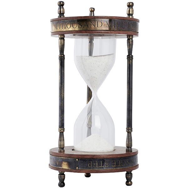 שעון חול זכוכית עץ ונחושת 5 דקות
