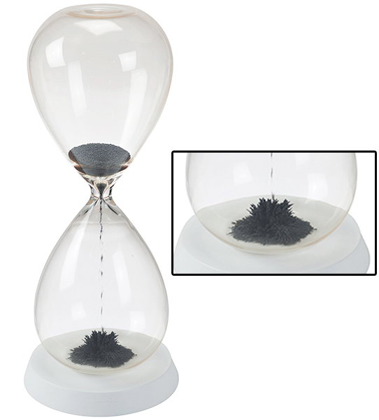 שעון חול מגנטי הוא לא עוד שעון רגיל. זהו פריט עיצובי מיוחד שמשלב בין אסתטיקה לפונקציונליות. השעון, בגובה 25 ס"מ, כולל מבנה זכוכית שקוף ובתוכו חול מתכתי שמושך אליו מגנט הנמצא בבסיס העץ. התנועה המרתקת של החול המתכתי יוצרת מופע ויזואלי מרגיע ומעניין. עיצוב ייחודי: השילוב בין הזכוכית השקופה, החול המתכתי והבסיס העץ יוצר מראה אלגנטי ומודרני שיתאים לכל חלל.