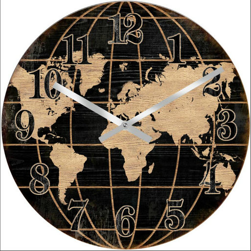 • שעון קיר זכוכית גלובוס עולם 38 ס"מ.