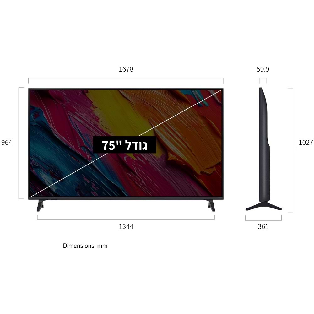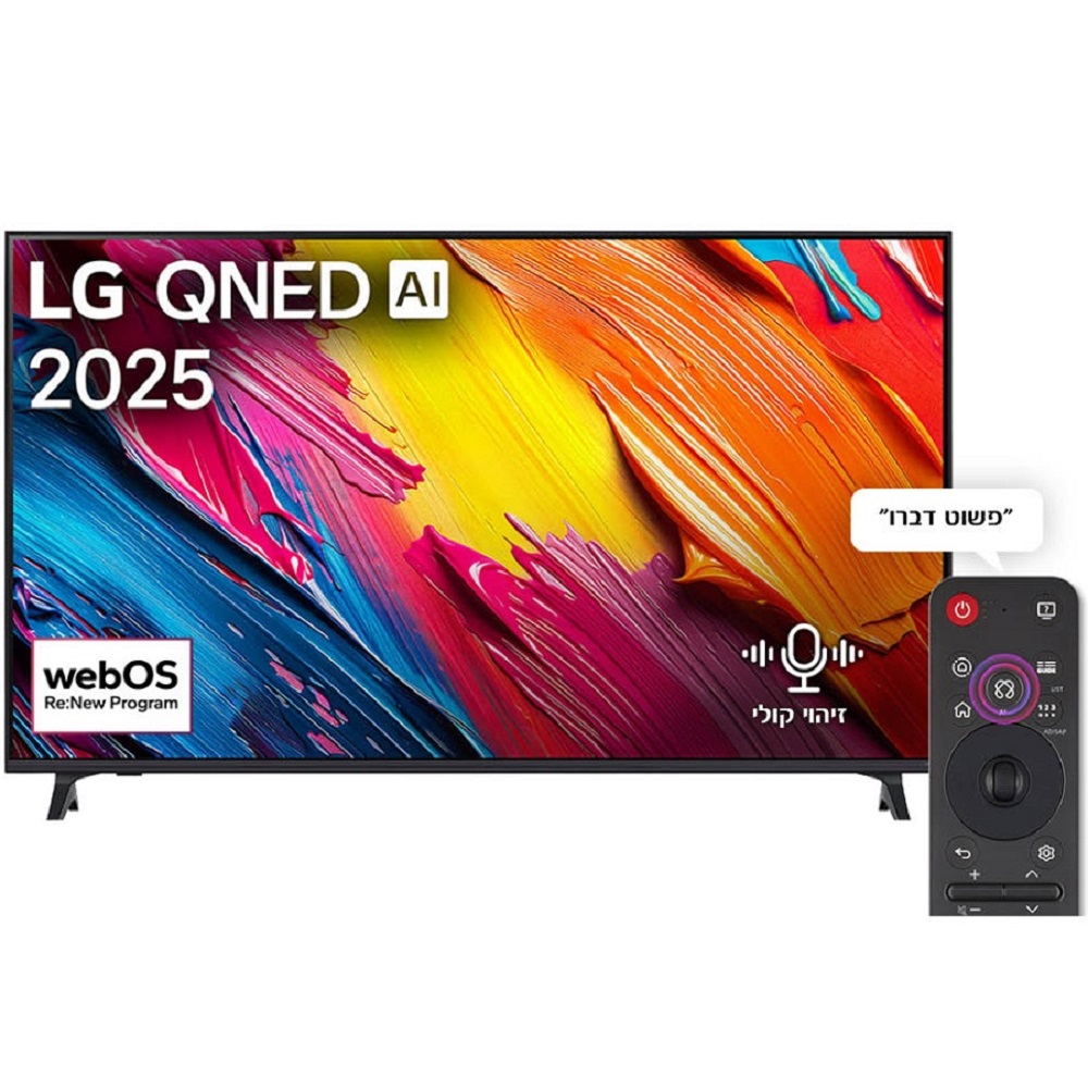 טלוויזיה חכמה 4K QNED LG 75QNED70A6A. טלוויזיה חכמה 75". עם צבעים חדים ומדויקים, שדרוג תמונה באמצעות AI וממשק webOS 25 נוח. טלוויזיה חכמה, מתקדמת ואיכותית ביותר.