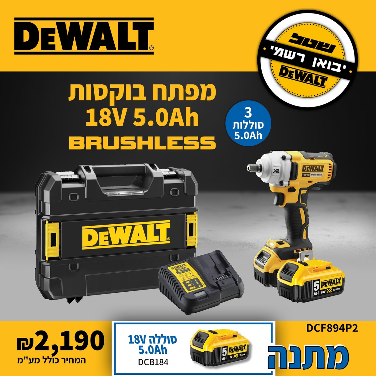 סוללה 18V 5.0AH DCB184 מתנה