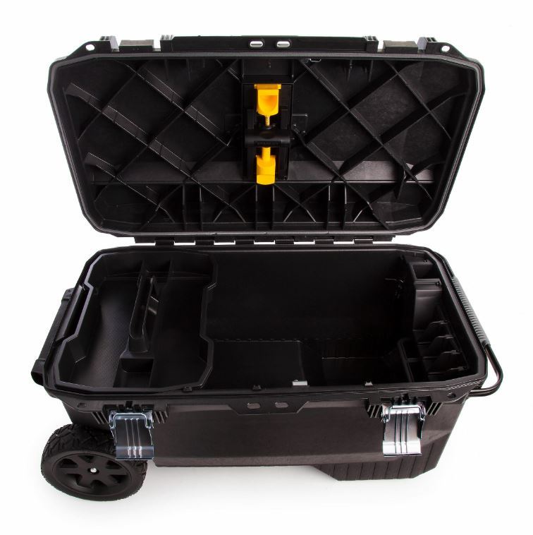 הארגז כולל: מגש כלים נשלף לאחסון ושמירת חפצים קטנים, 2 גלגלים מצופים גומי עמידים לנשיאה חזקה, ידית טלסקופית נחבאת הניתנת למשיכה ולקיפול ומאפשרת גרירה נוחה,