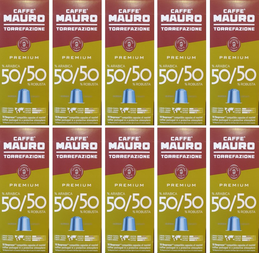 קפה מאורו פרימיום לנספרסו 50% ערביקה ו 50% רובוסטה בדרגת חוזק 12.