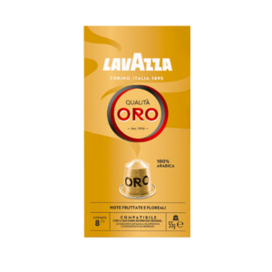 10 קפסולות לוואצה אורו 100% ערביקה, חוזק 8/13. תערובת עדינה ואלגנטית עם תווים של פירות ופרחים.