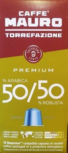 קפסולות למכונת נספרסו מהמותג הדרום איטלקי Mauro. קפה מאורו פרימיום לנספרסו 50% ערביקה ו 50% רובוסטה בדרגת חוזק 12. קפה בעל מרירות שוקולדית, מעט מאוד חמיצות. גוף בינוני גבוה ואחוז קופאין בינוני.