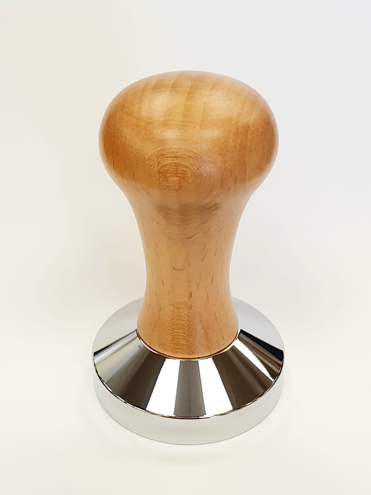 דוחסן מנירוסטה 58 מ"מ עם ידית מעץ בגוון אלון.