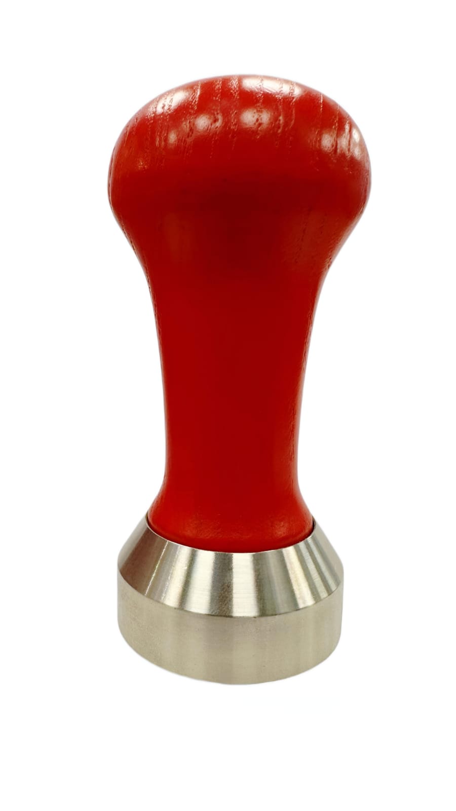 דוחסן מנירוסטה, 41 מ"מ עם ידית מעץ בצבע אדום