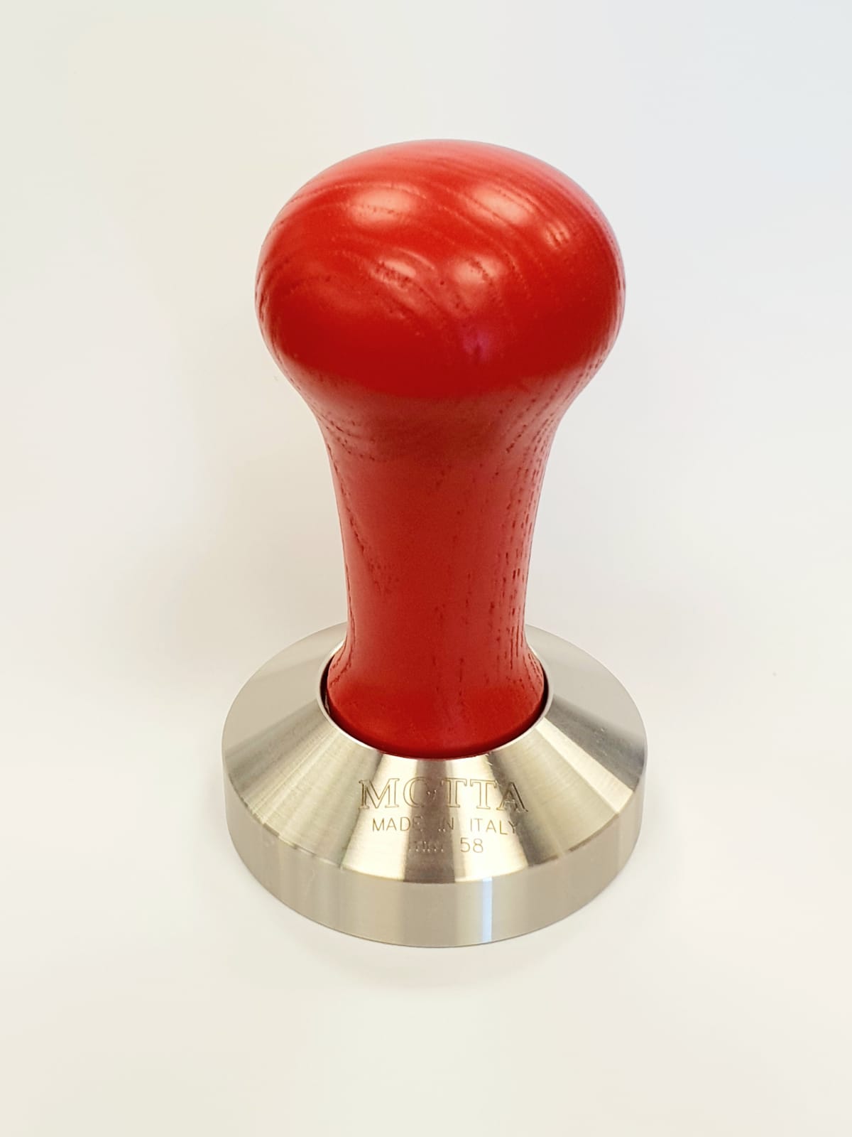 דוחסן מנירוסטה עם ידית מעץ בצבע אדום של חברת מוטה motta.