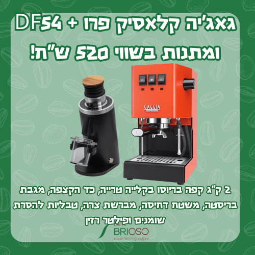 מכונת קפה גאג’יה קלאסיק פרו דגם קודם Gaggia Classic Pro + מטחנת קפה DF54 + מתנות בשווי 520 ש"ח!