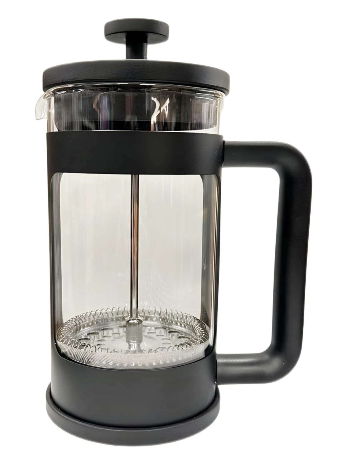 פרנץ’ פרס זכוכית עם מסננת נירוסטה אל חלד הניתנת לפירוק לצורך ניקוי, תחתית סיליקון לשימוש נוח על כל משטח ומסגרת פלסטיק דקורטיבית.