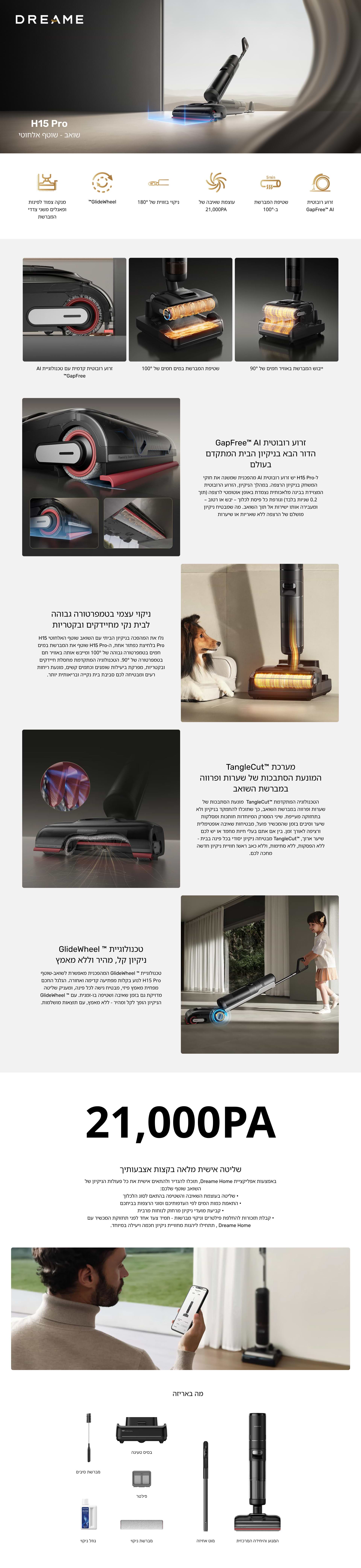 ⦿עוצמת שאיבה – 21,000pa