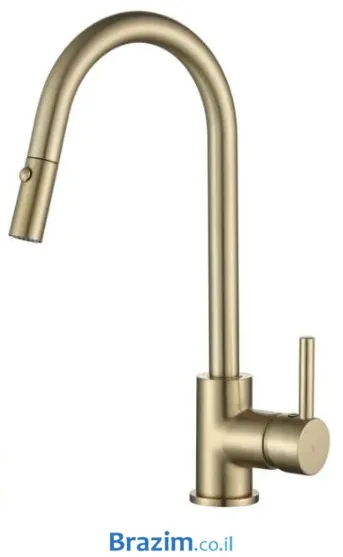 גימור הזהב המט מעניק לברז מראה יוקרתי, חם ומעודן שמשתלב באופן מושלם במטבחים מודרניים, כפריים או קלאסיים. הציפוי, המיוצר בטכנולוגיית PVD מתקדמת, מבטיח עמידות גבוהה בפני שריטות ודהייה, כך שהמראה המרשים נשמר לאורך שנים. למידע נוסף על הטכנולוגיה, קראו את המדריך שלנו על גוונים PVD בגימור ברזים.
