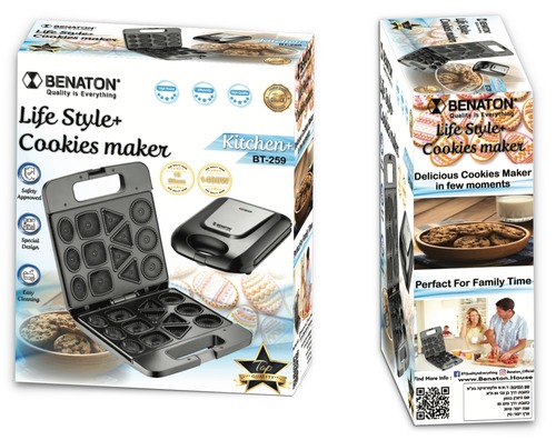 אופה טוסטר עוגיות BT-259 דגם BENATON עם פלטות NON STICK ופלטה מוכנה להכנת 13 עוגיות ב4 צורות