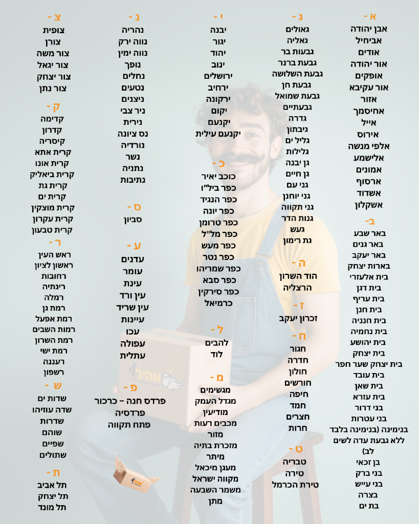 📍 לצפייה ברשימת היישובים המלאה למשלוח מהיר/אקספרס »