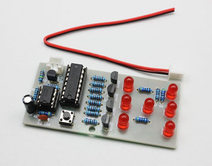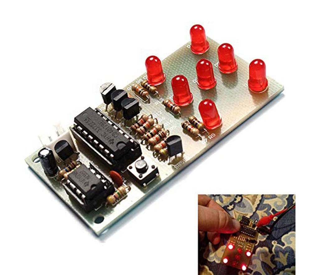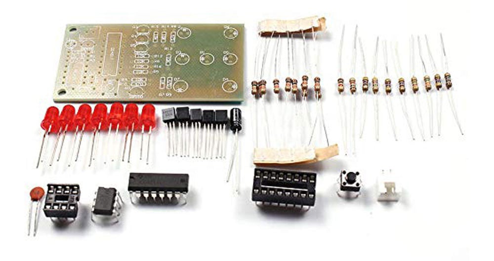 ממעגל זה תוכלו לבנות מעגל אלקטרוני של קוביית מזל אלקטרונית – קוביית משחק ההמראה את המספרים 1-6 בצורה של נורות LED הנדלקות באופן אקראי עם מספר אחר בכל פעם שנלחץ על כפתור ה "ערבוב" קיט מדליק במיוחד!