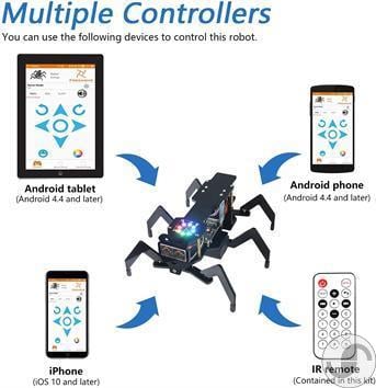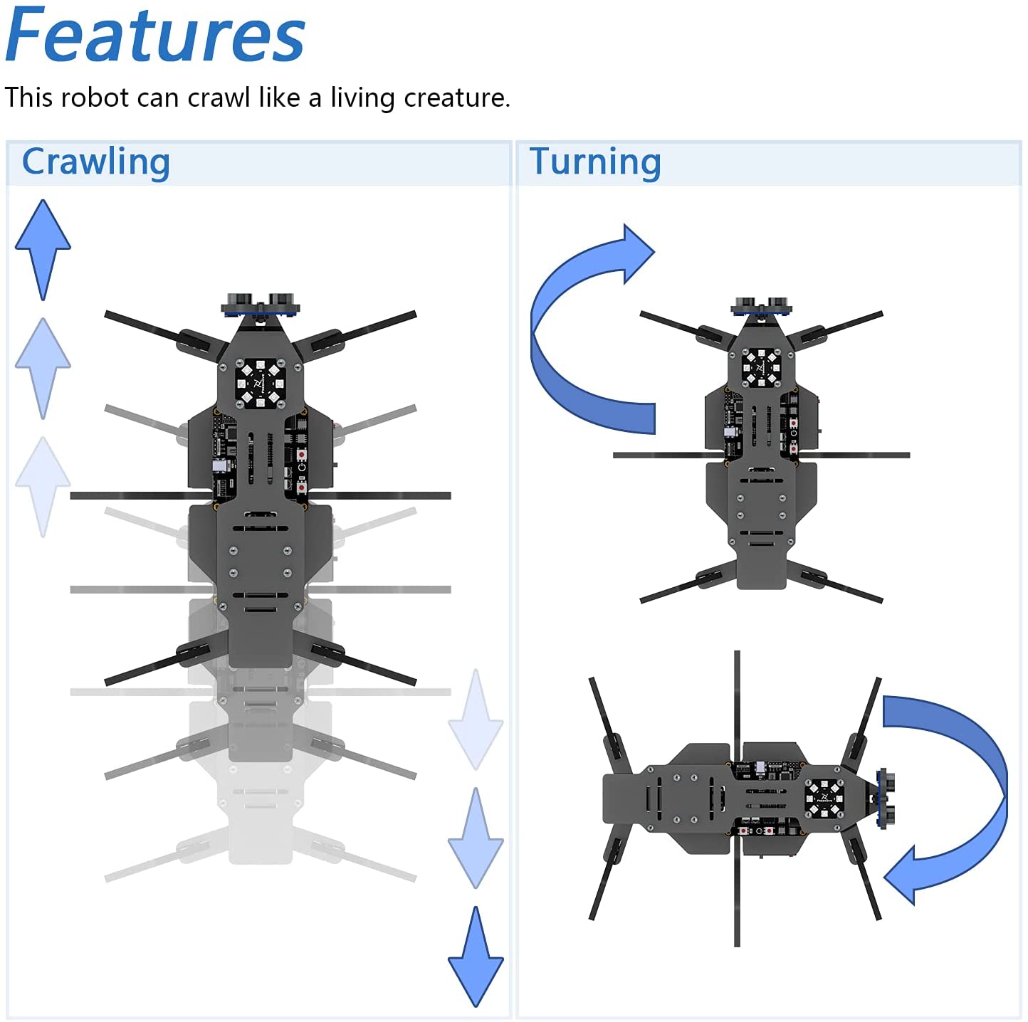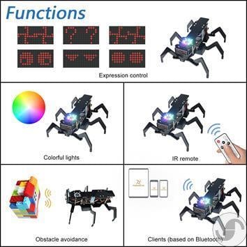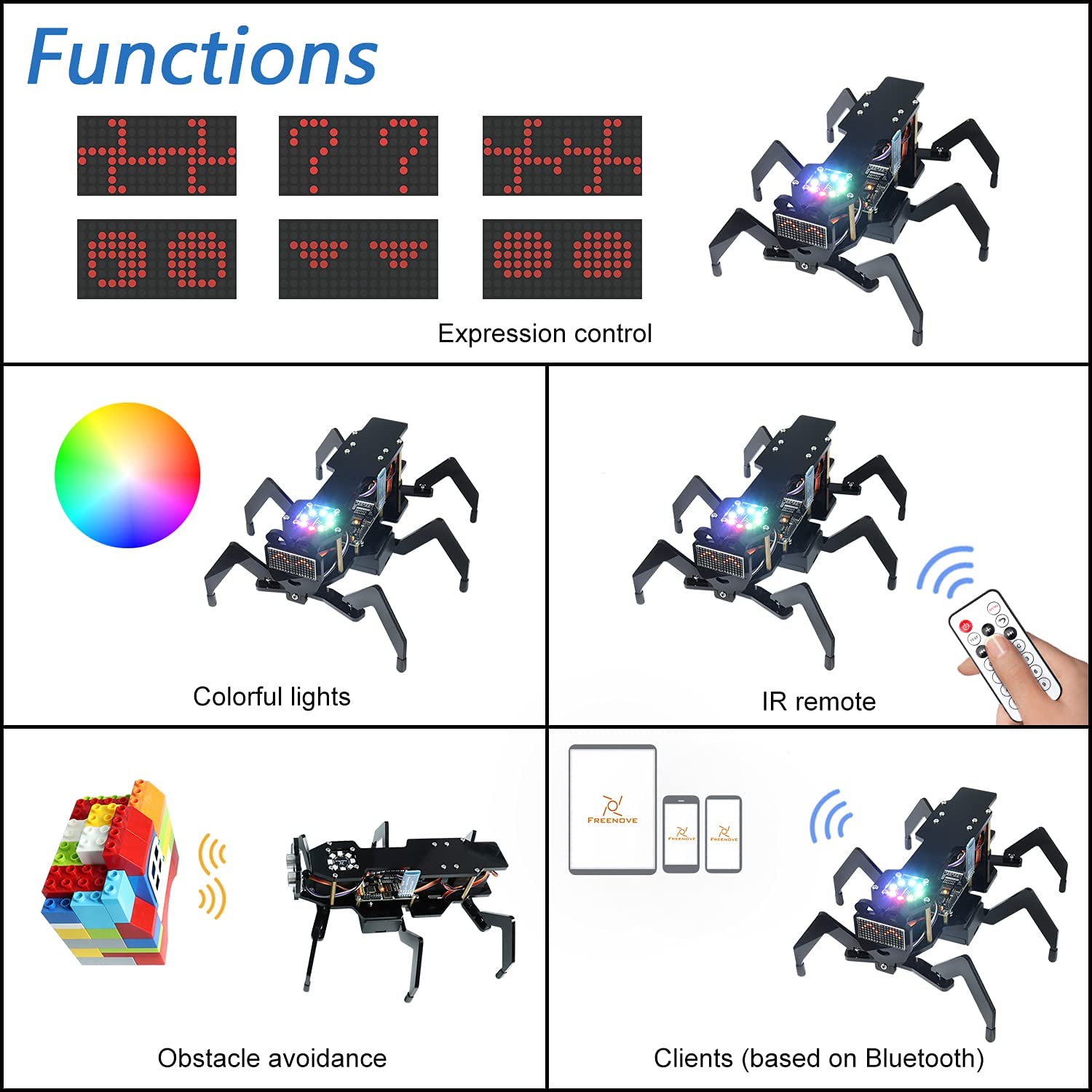 ערכת רובוט נמלה לתכנות עם בקר תואם ארדואינו כולל מטריצת לד חיישן אולטרסוני ושלט רחוק מבית Freenove