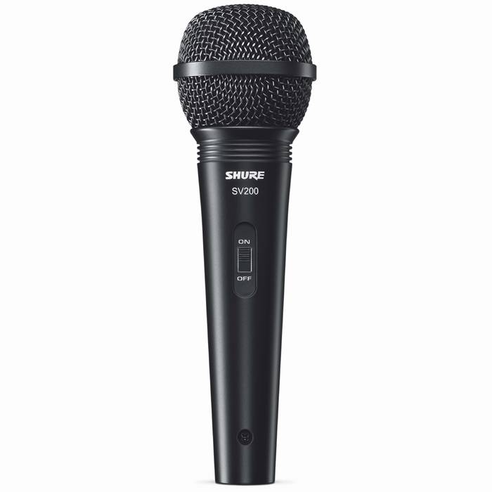 מיקרופון דינמי Shure SV200 עם ראש קרדיואידי, חיבור XLR ועמידות גבוהה – אידיאלי לשירה, דיבור, הופעות והקלטות מקצועיות.