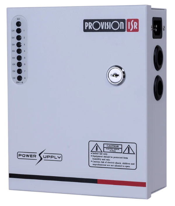 ספק כוח מרכזי לתליה על הקיר מתאים לעד 8 מצלמות 12V DC 5 AMP PROVISION
