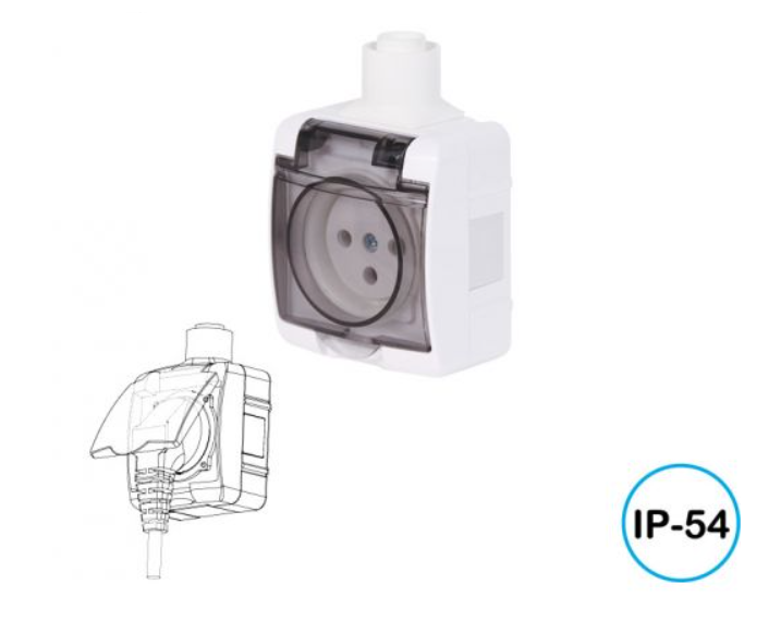 שקע כח מוגן מים IP54 גם כשהתקע מחובר על הטיח